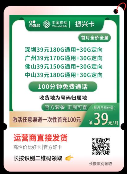 ✅✅广东移动39元大流量套餐