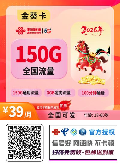 ✅✅长期39元150G+100分钟